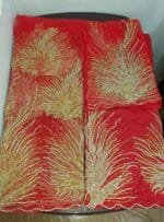 Hand beaded Golden Swarovski stone on red george fabric for Nigerian wedding bride
